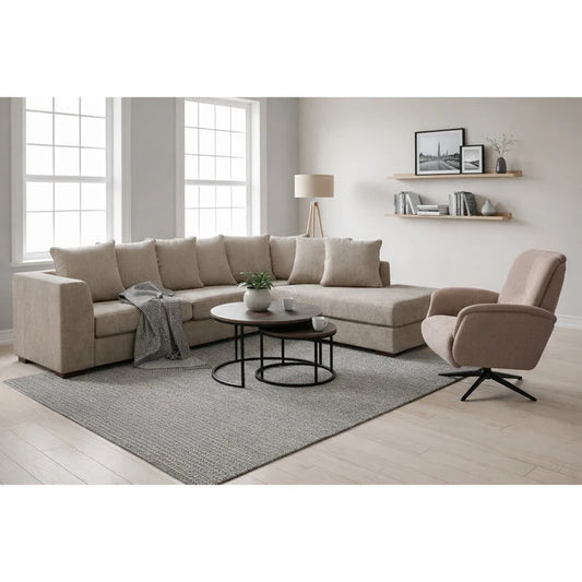 Havanna sofa med sjeselong fra A-Møbler, taupe tekstil, høyre sjeselong