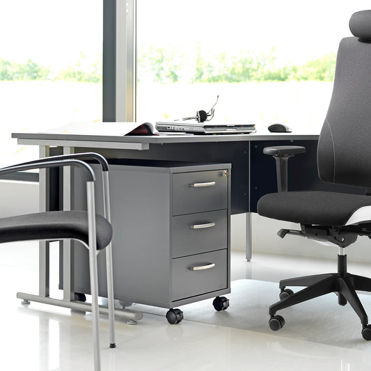 Skuffeseksjon FLEXUS, med hjul, 3 skuffer, grå fra AJ Produkter