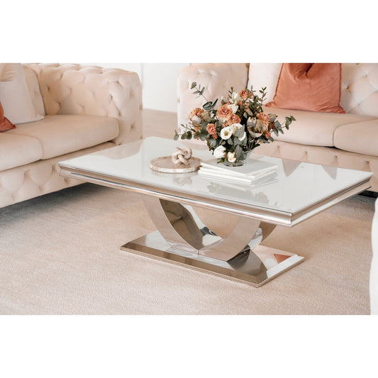 Firenze Sofabord fra A-Møbler, 130x70 cm, hvitt glass
