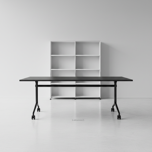 Sammenleggbart bord KLARA, hvit plast, 153 x 76 cm, svart understell
