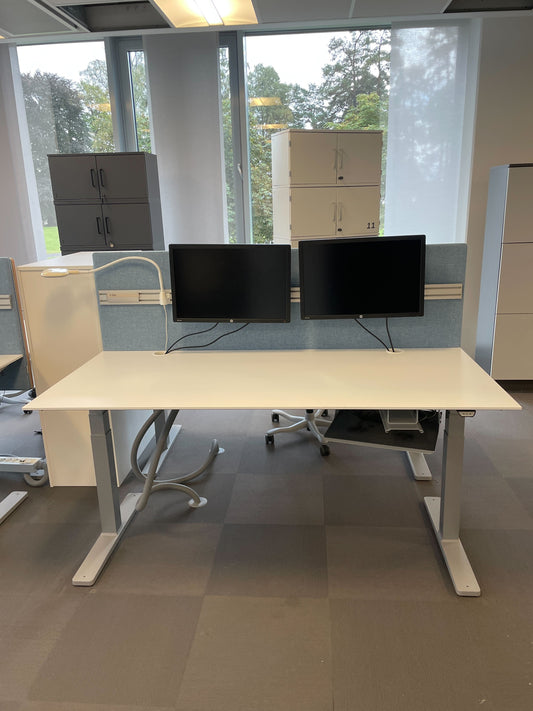 Elektrisk hev/senk skrivebord fra Kinnarps, hvit/grå, 180x80 cm
