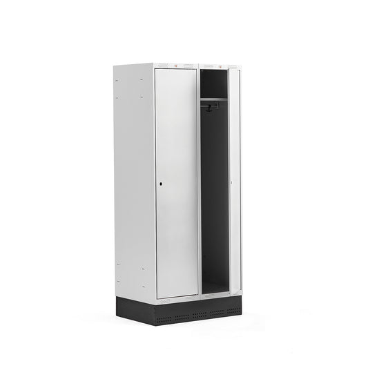 Garderobeskap CLASSIC, sokkel, 2 seksjoner, H1890 B800 D550 mm, grå