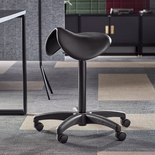 Sadelstol TRENT, hjul, sete i polyuretan, svart