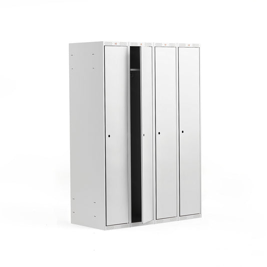 Helt nytt | Garderobeskap CLASSIC, 4 seksjoner, flatt tak, H1740 B1200 D550 mm, grå