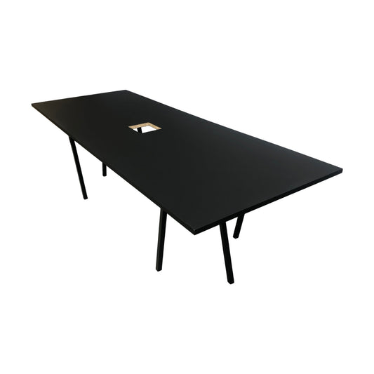 Down møtebord, svart treflate m/ sorte metallben, 250cm