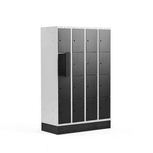 Helt nytt | Småromsskap CLASSIC, sokkel, 4 seksjoner, 16 dører, H1890 B1200 D550 mm, svart