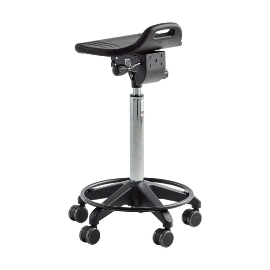 Helt nytt | Arbeidsstol PEYTON, PU-sete, benstativ med hjul og fotring, H71–97cm