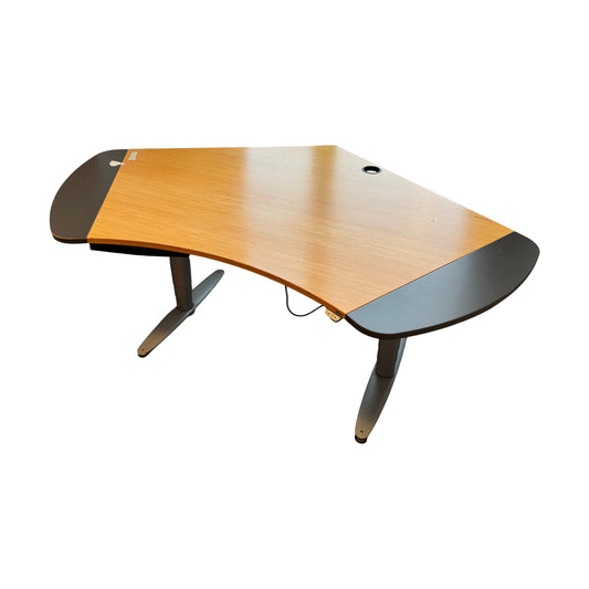 Elektrisk hev/senk hjørneskrivebord fra Kinnarps, grå/trefarget, 180cm