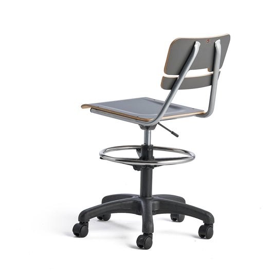 Stol LEGERE, hev/senk, stort sete, hjul, 530–720 mm, antrasitt