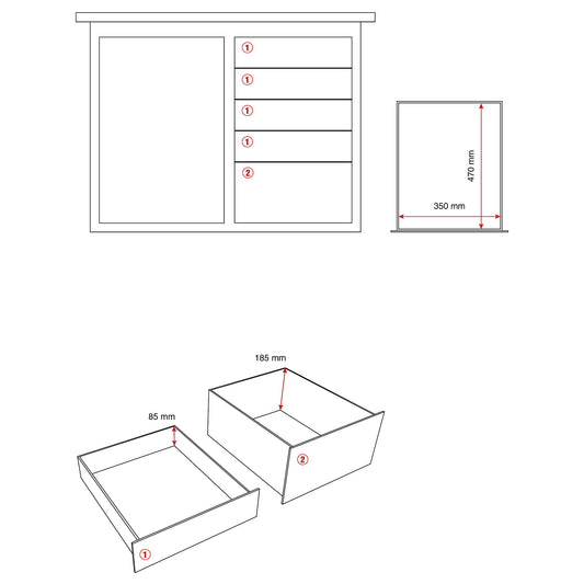 Verktøykasse med 1 dør og 5 skuffer, L1100 B595 H900 mm