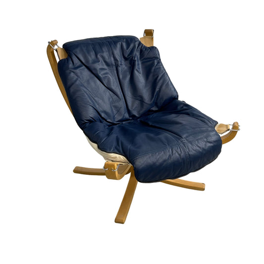 UtsolgtBlå stol fra Vatne Møbler, skinn