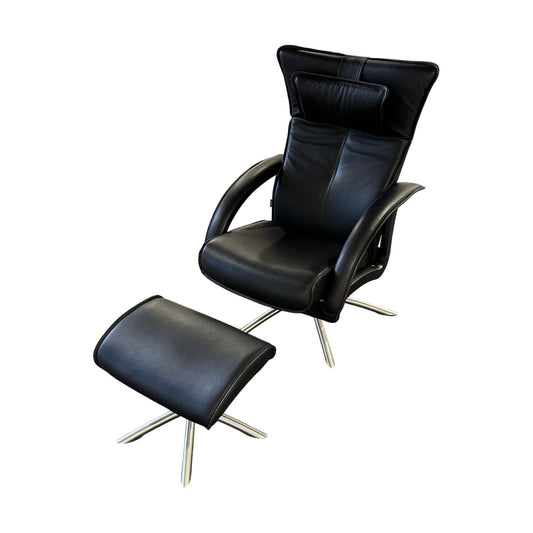 Delta lenestol fra Brunstad, hud, m/fotskammel