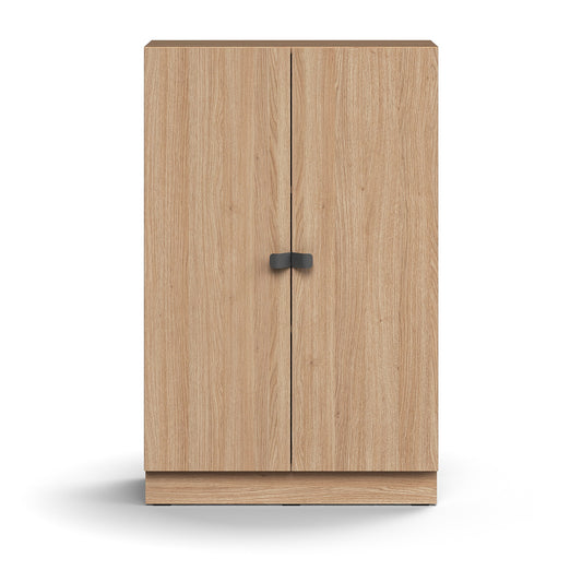Skap QBUS, 2 hyller, sokkel, håndtak, H1252 B800 D420 mm, eik