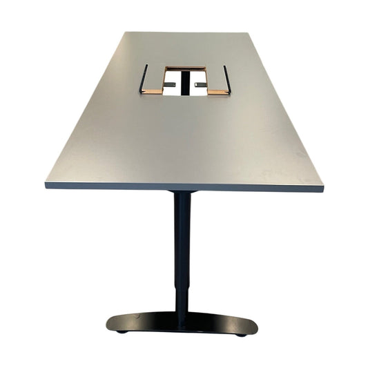 (180x80) Møteromsbord i grått med kabelbrønn og sorte skråbein fra Aarsland