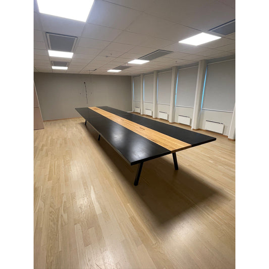 Møtebord i svartbeiset tre og lakkert eik, 600x160 cm