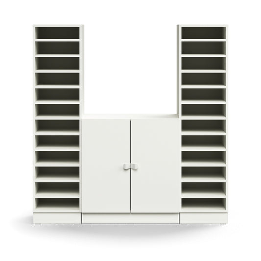 Helt nytt | Postsorteringshylle QBUS, 22 hyller + skap, sokkel, H1636 B1600 D420 mm, hvit