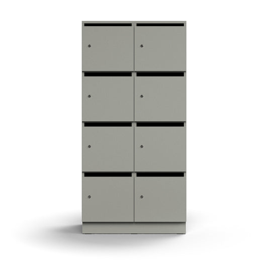 Postsorteringshylle QBUS, 8 rom, sokkel, H1636 B800 D420 mm, lys grå