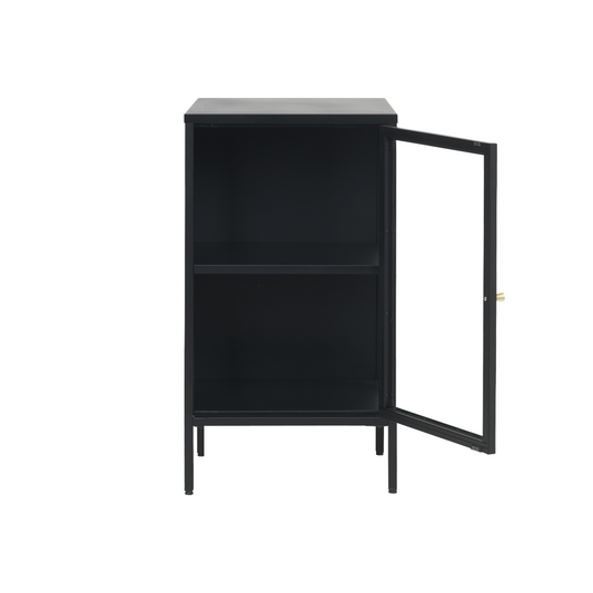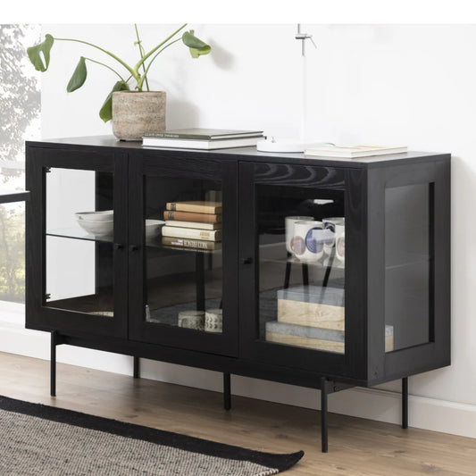 Carmel skjenk fra A-Møbler, sort metall med glassdører