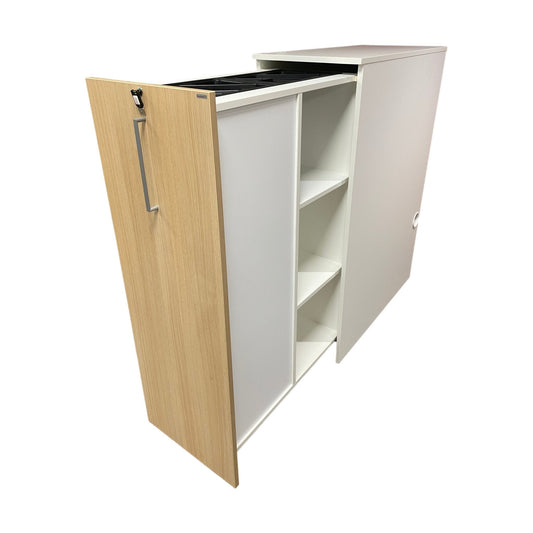 Materialskap THEO, H900 B1000 D320 mm, låsbart, hvit