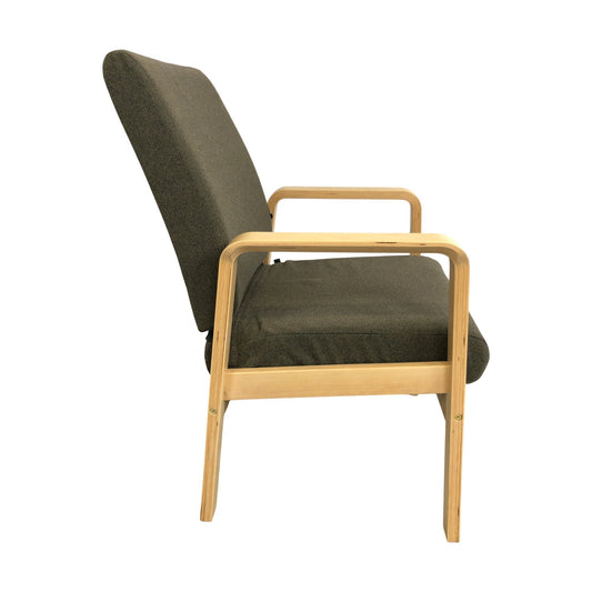 Zeta lenestol fra VAD, brungrønt stoff, høy rygg