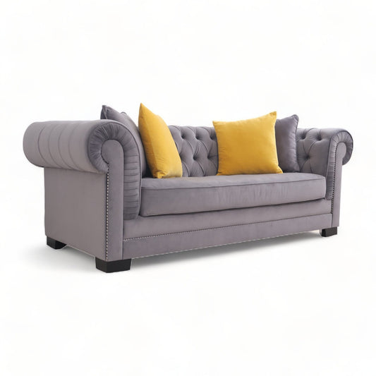 Bella 3-seter sofa, mørk grå velour, krom ben