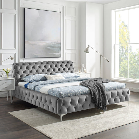 Bella Dobbeltseng i grå velour, 180x200cm fra A-Møbler