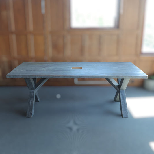 Romslig, retro spisebord i massiv eik med sorte ben, 260cm