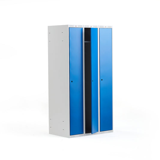 Garderobeskap CLASSIC, 3 seksjoner, flatt tak, H1740 B900 D550 mm, blå fra AJ Produkter