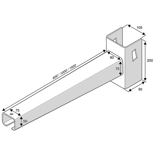 Arm til grenreol EXPAND, 600 mm, rød stål fra AJ Produkter