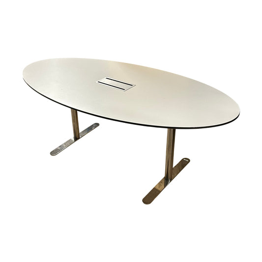 Ovalt møtebord, hvit laminat, 190x100 cm