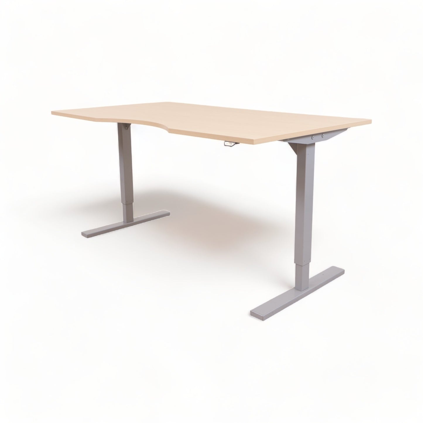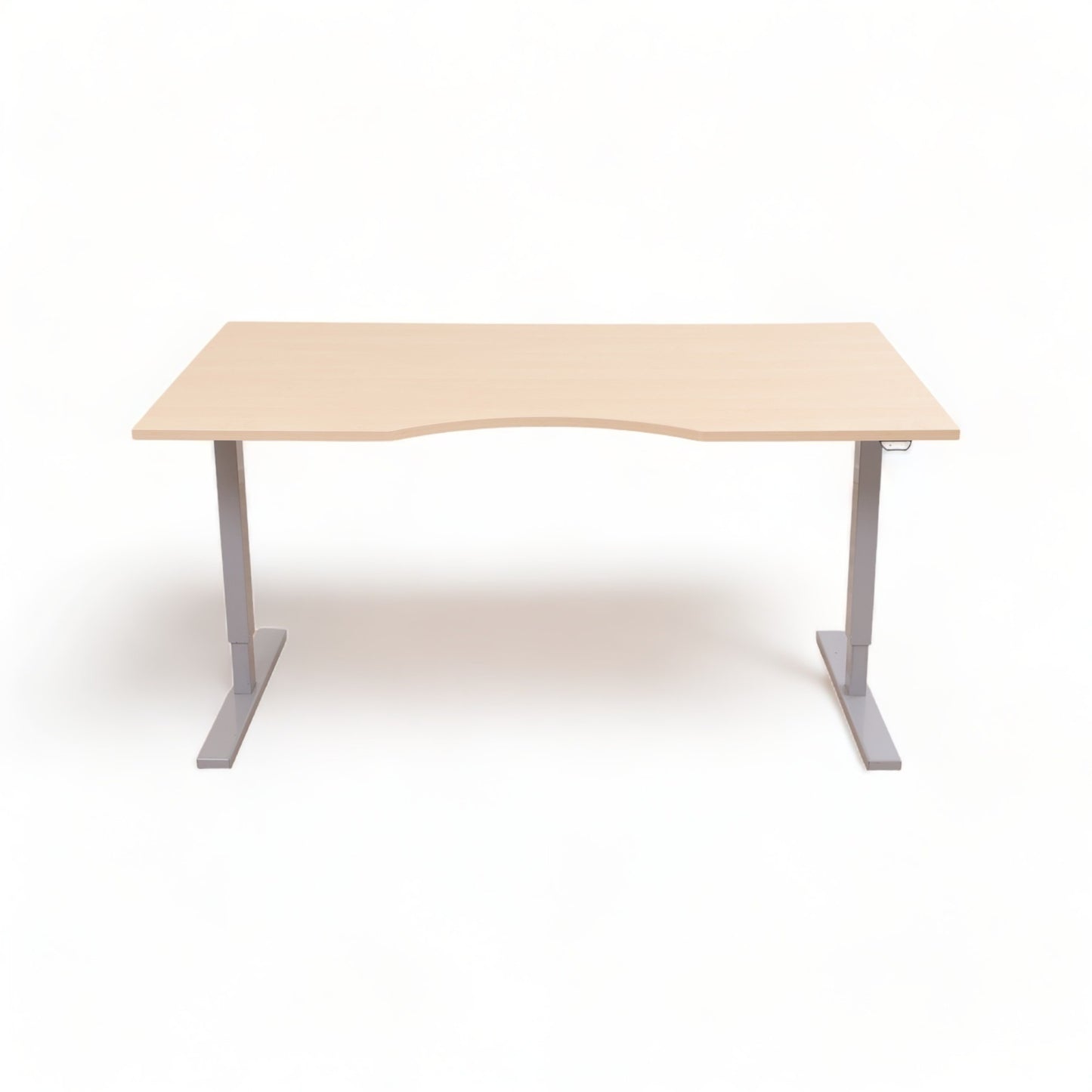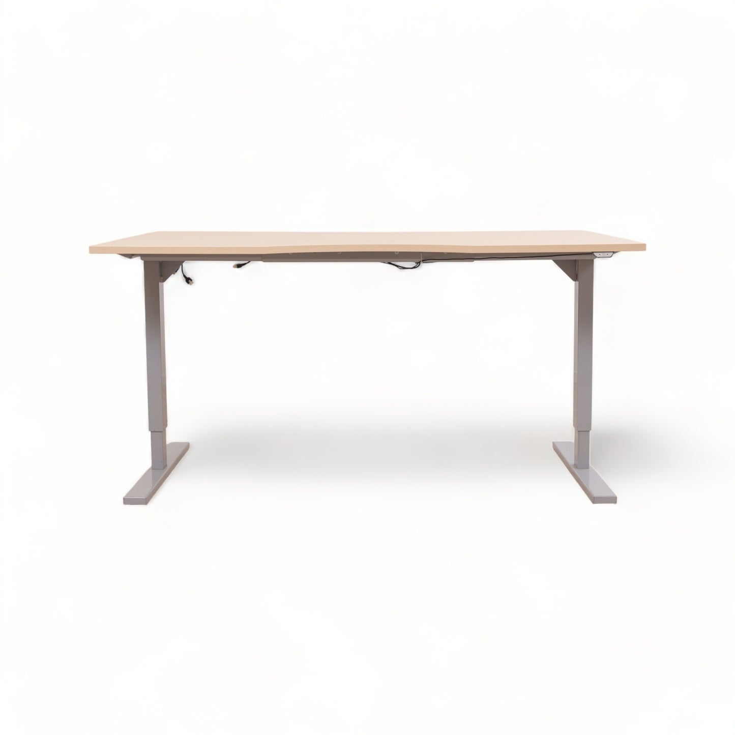 160x90 cm, elektrisk hev/senk skrivebord med lys bordplate og grått understell
