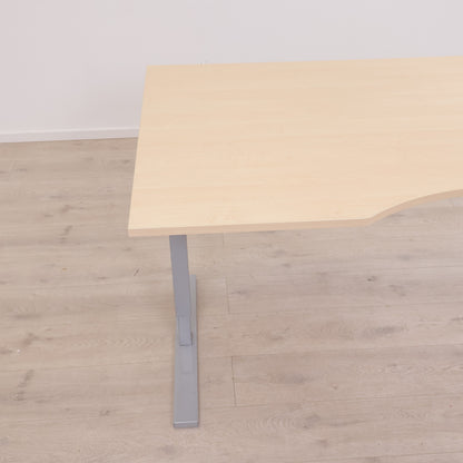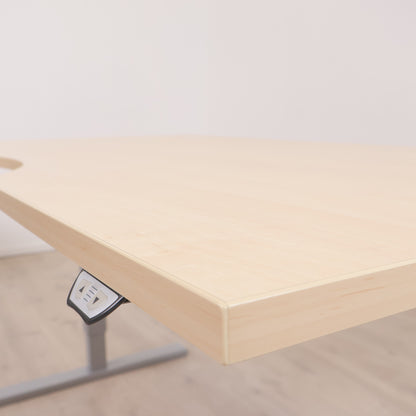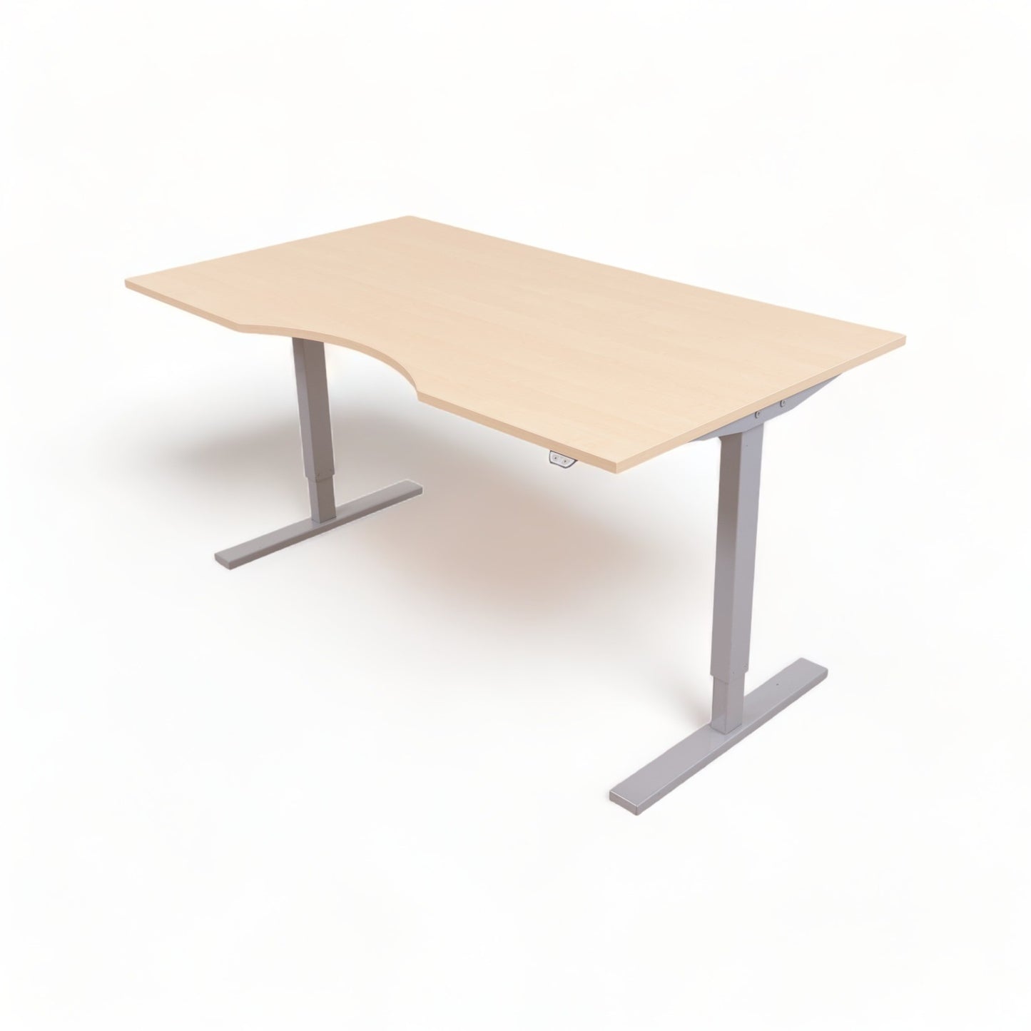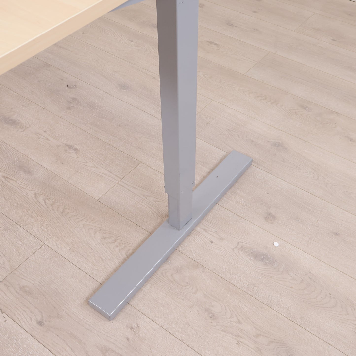 160x90 cm, elektrisk hev/senk skrivebord med lys bordplate og grått understell