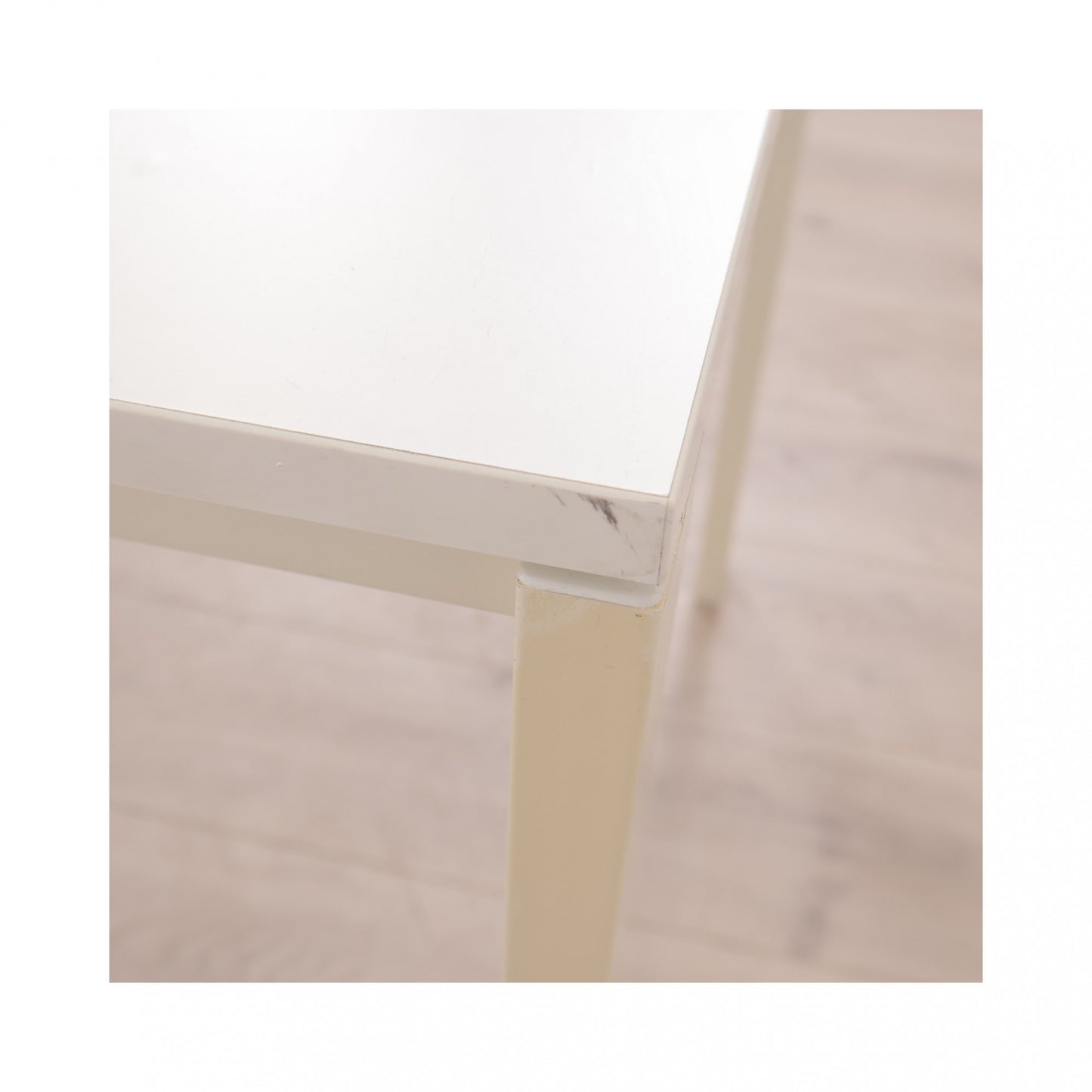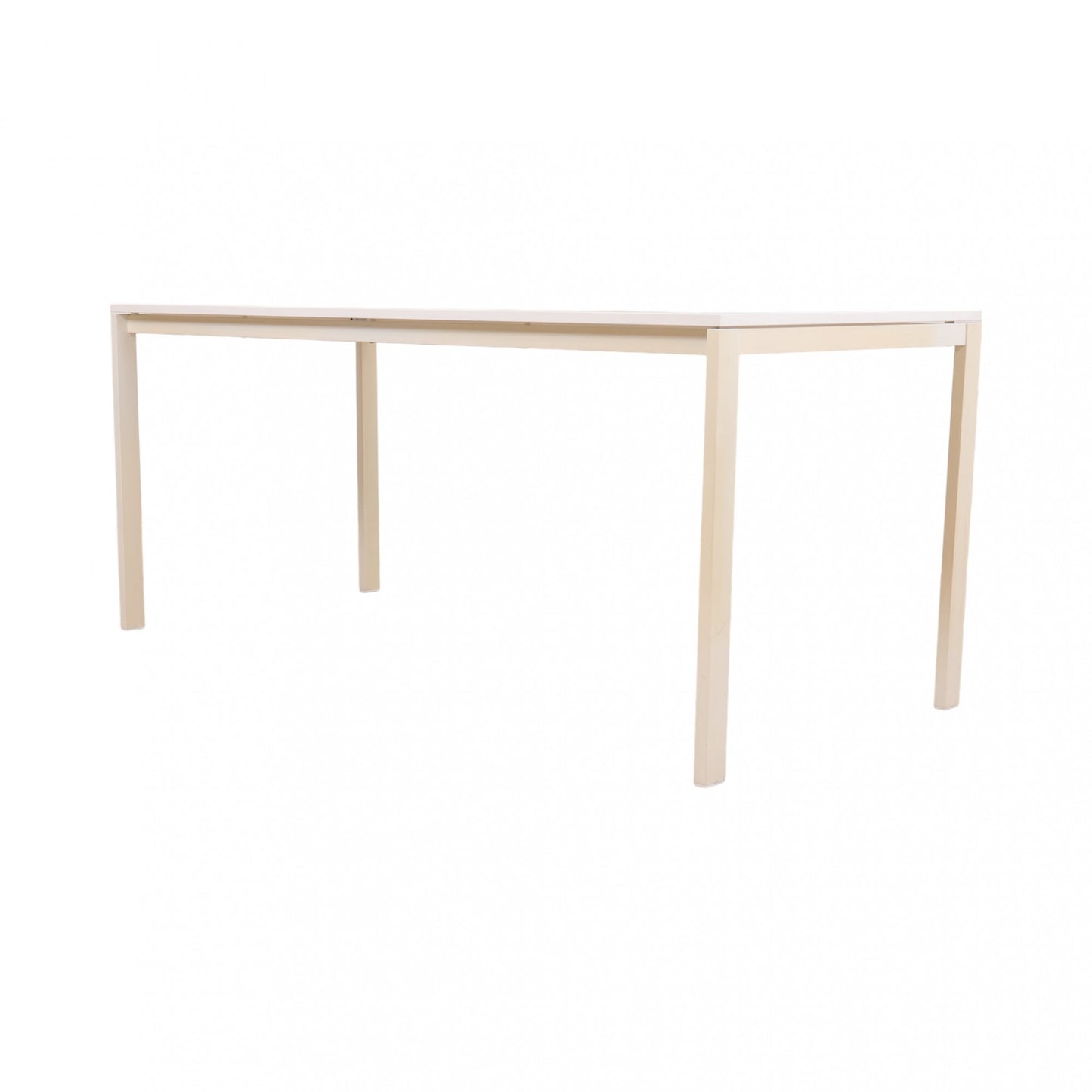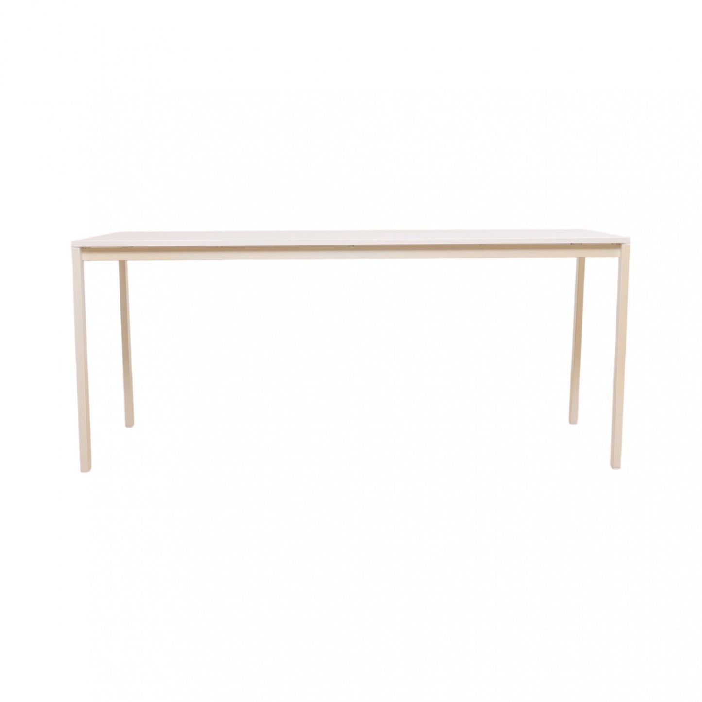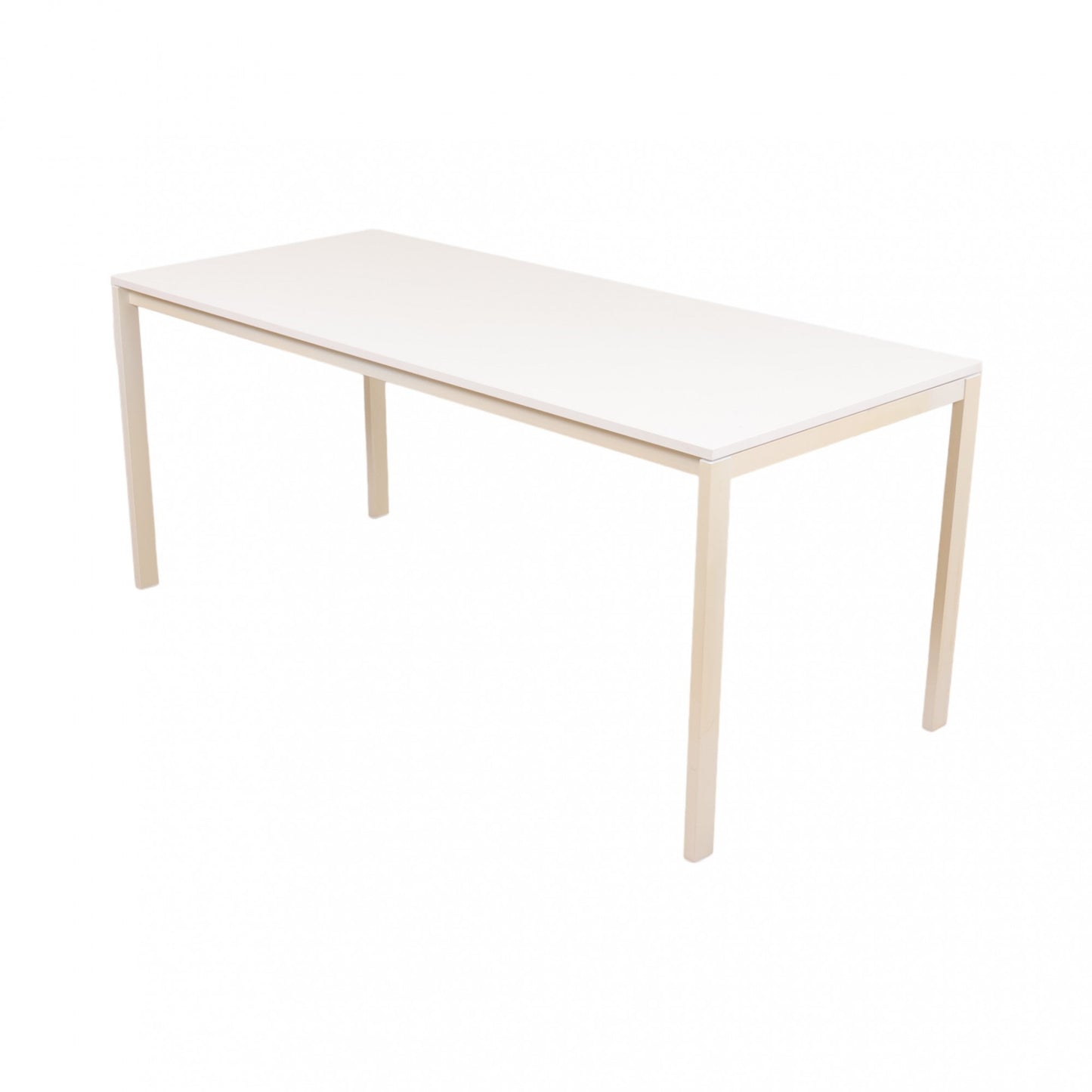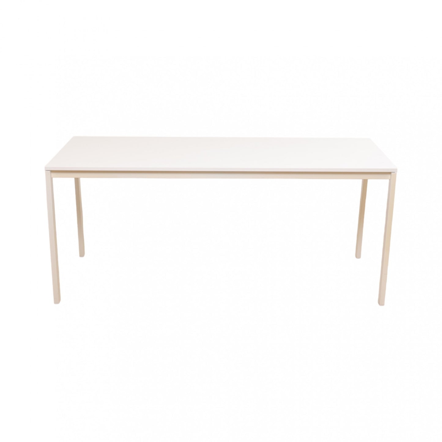 175x75 cm, IKEA MELLTORP helhvit skrivebord. Minimalistisk skrivebord som kan brukes både som skrivebord, arbeidsbord og møteromsbord Noe mindre rugler på bordflaten (ikke synlig på bilder). Noen bruksmerker på bein og bordflate - dette er avbildet.