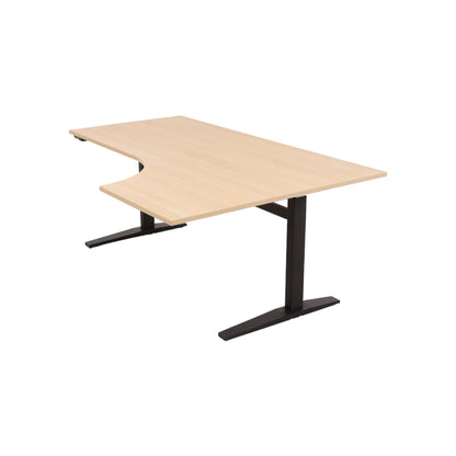 180x120 cm, Elektrisk hev/senk skrivebord med lys treplate og høyresving