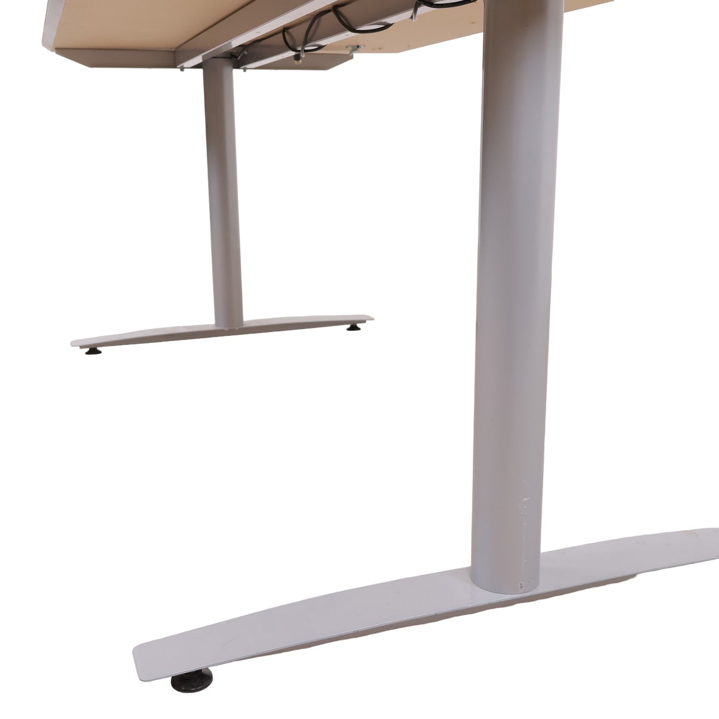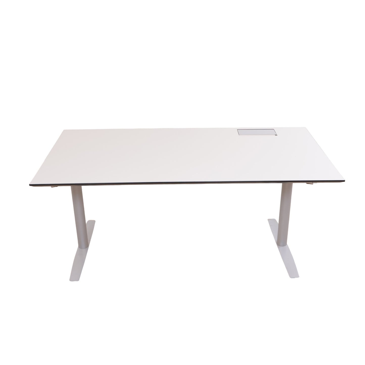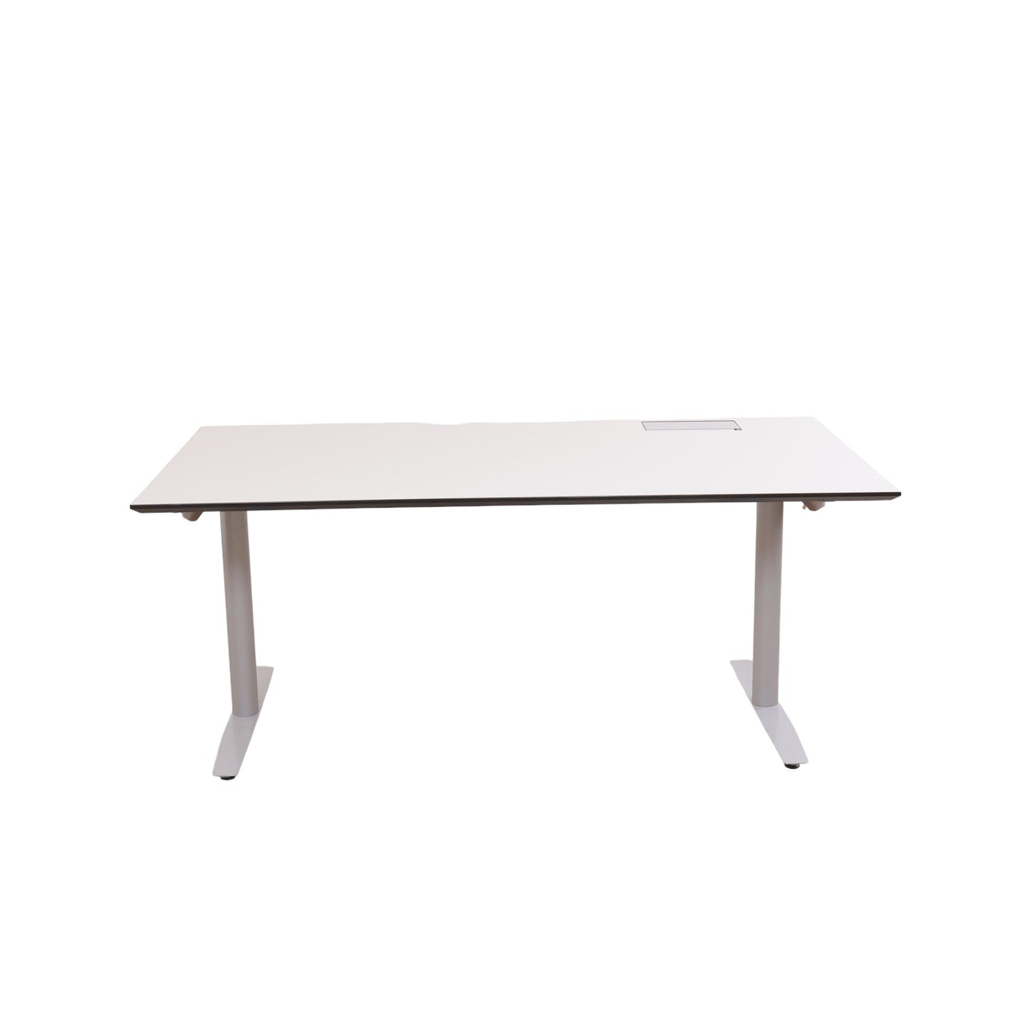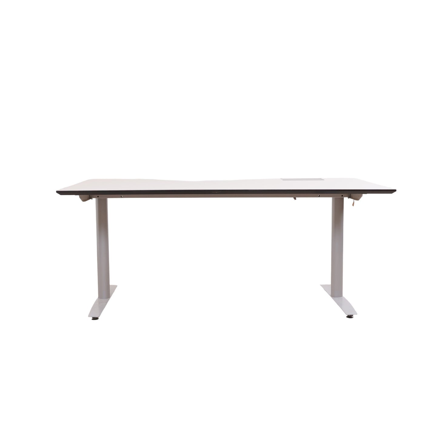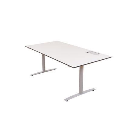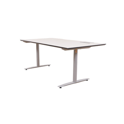 180x90 cm, elektrisk hev/senk skrivebord, grå bordplate med kabelluke