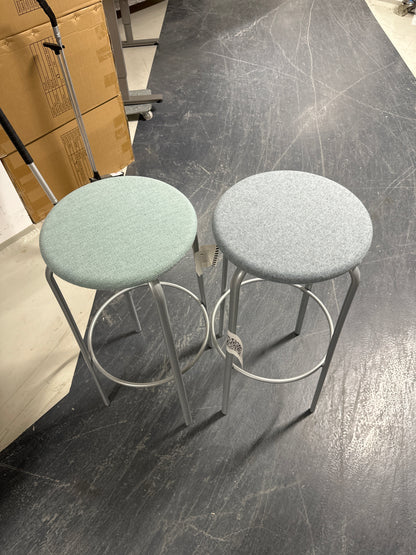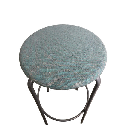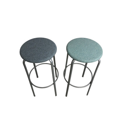 Barstol fra Kinnarps med solid stålramme og sete trukket i ullstoff. Setet har en lys blå farge, og stolen er ideell for barbord eller høye benker.