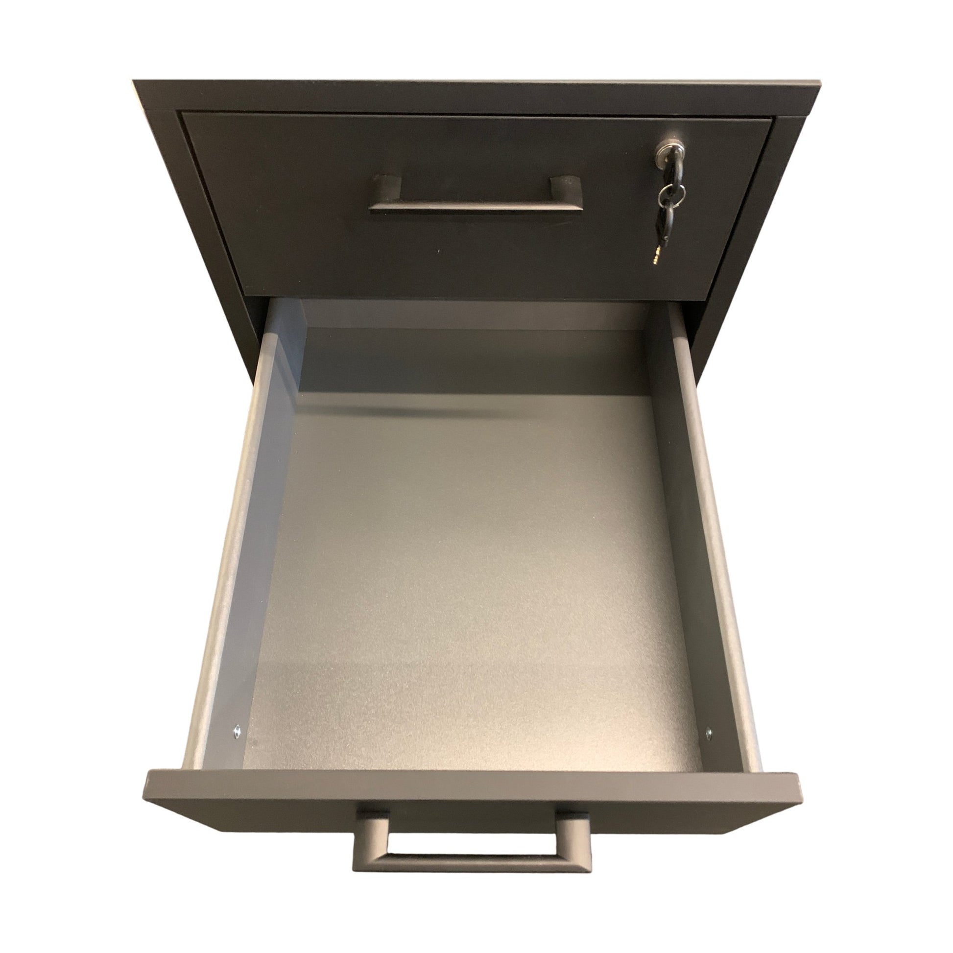 Denne skuffeseksjonen er perfekt for å organisere dokumenter og tilbehør på kontoret. Den har tre praktiske skuffer, hvor den øverste skuffen er låsbar for ekstra sikkerhet.