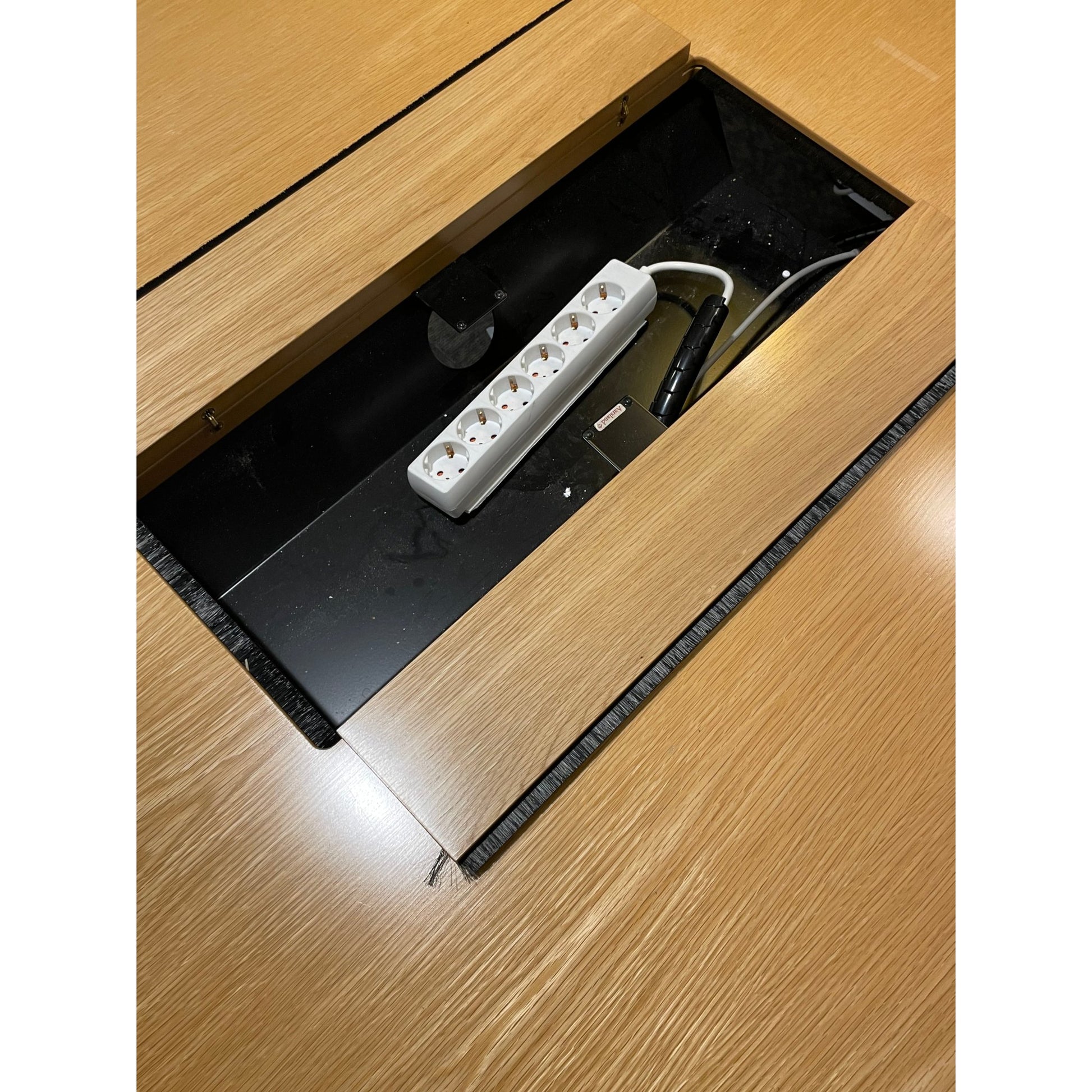Den romslige bordflaten på 340x120 cm gir god plass til flere deltakere og legger til rette for effektive møter. Det er også integrerte uttak for enkel tilkobling av utstyr, noe som bidrar til en ryddig og funksjonell arbeidsplass.