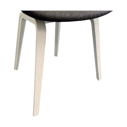 Moderne og stilren loungestol med en myk og behagelig form. Det grå ullstoffet gir et varmt og innbydende preg, mens de lyse bena i tre gir et friskt inntrykk. Denne stolen er perfekt for både stue og kontor, og gir en komfortabel sitteopplevelse.