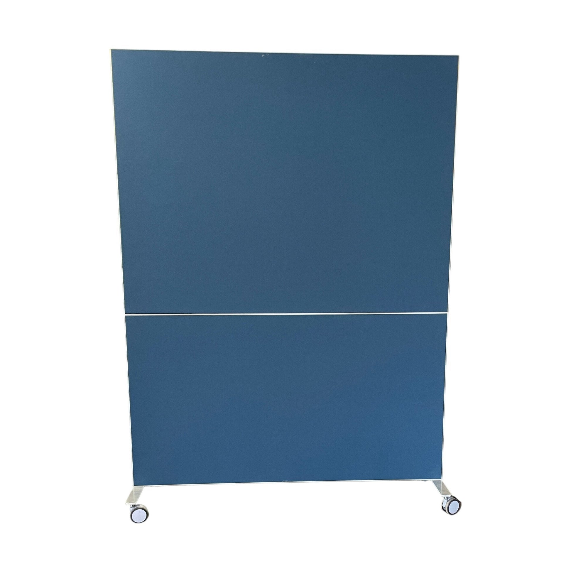 Alumi Combi Screen er en funksjonell og stilren romdeler fra Abstracta designet for å skape separate arbeidsområder i kontormiljøet. Veggen har en elegant kombinasjon av hvit og blå farge, hvor den nedre delen er trukket i blått tekstil som gir et moderne uttrykk. I tillegg er det en whiteboard-funksjon gjør den ideell for møter og brainstorming.