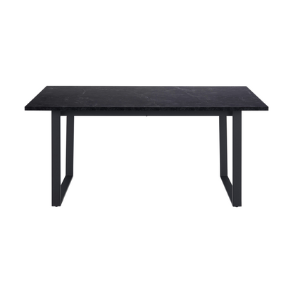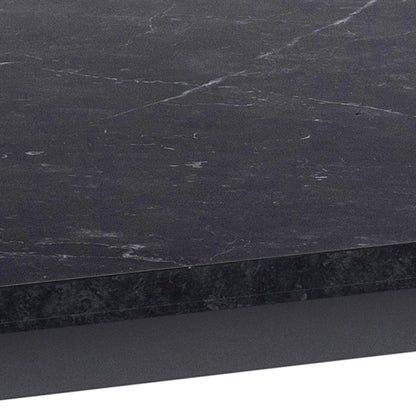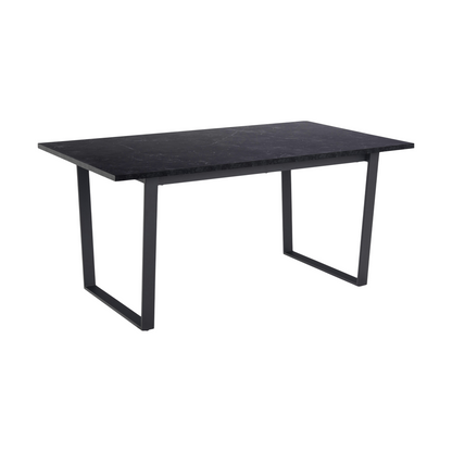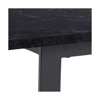 Amble spisebord fra A-Møbler er den perfekte kombinasjonen av stil og funksjonalitet. Med en solid melaminplate med imitert marmorprint og et understell i sort metall, passer dette bordet inn i ethvert spiserom.