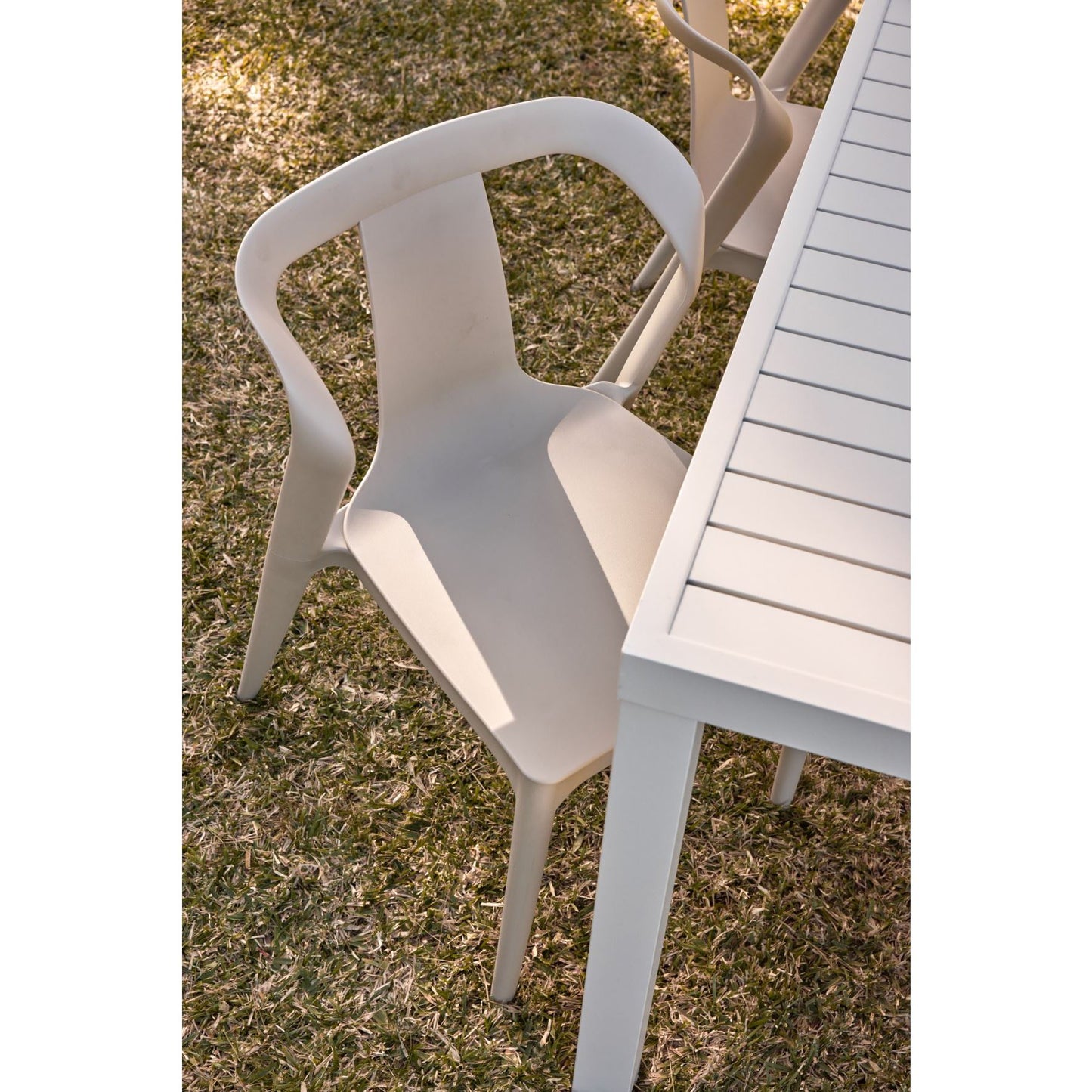 Praktisk og stilrent spisebord til uteplassen, laget i pulverlakkert aluminium. Det avlange bordet har rene linjer og en moderne estetikk, perfekt for både hagen og terrassen.