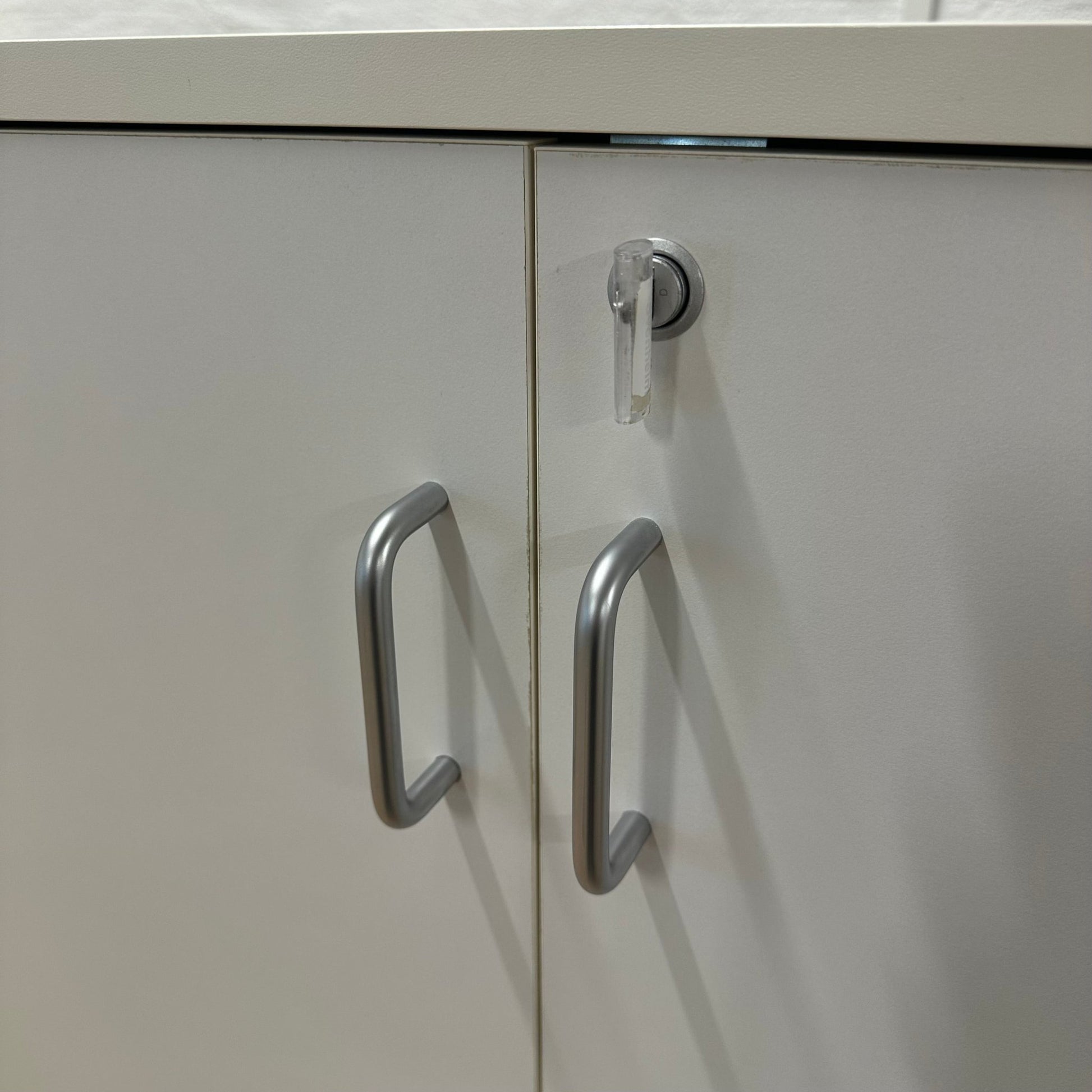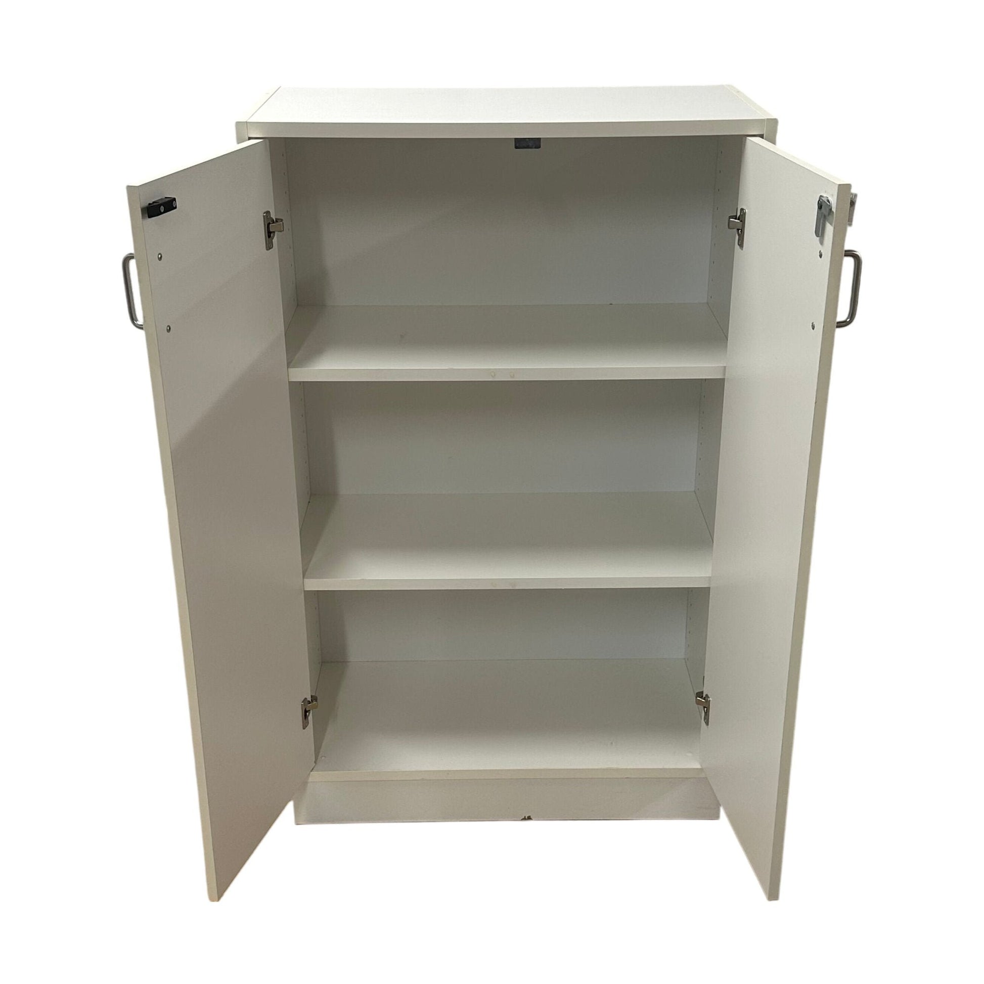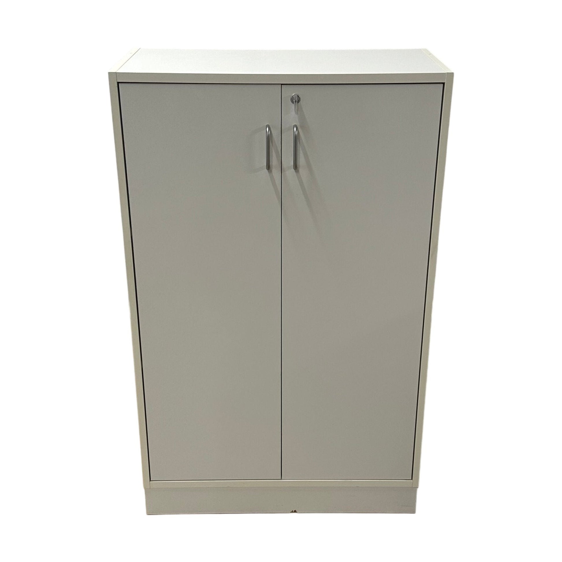 Arkivskap fra Svenheim med dobbel dør, designet for effektiv oppbevaring på kontoret. Den hvite overflaten gir et moderne preg, og skapets kompakte størrelse gjør det enkelt å plassere i mindre rom.