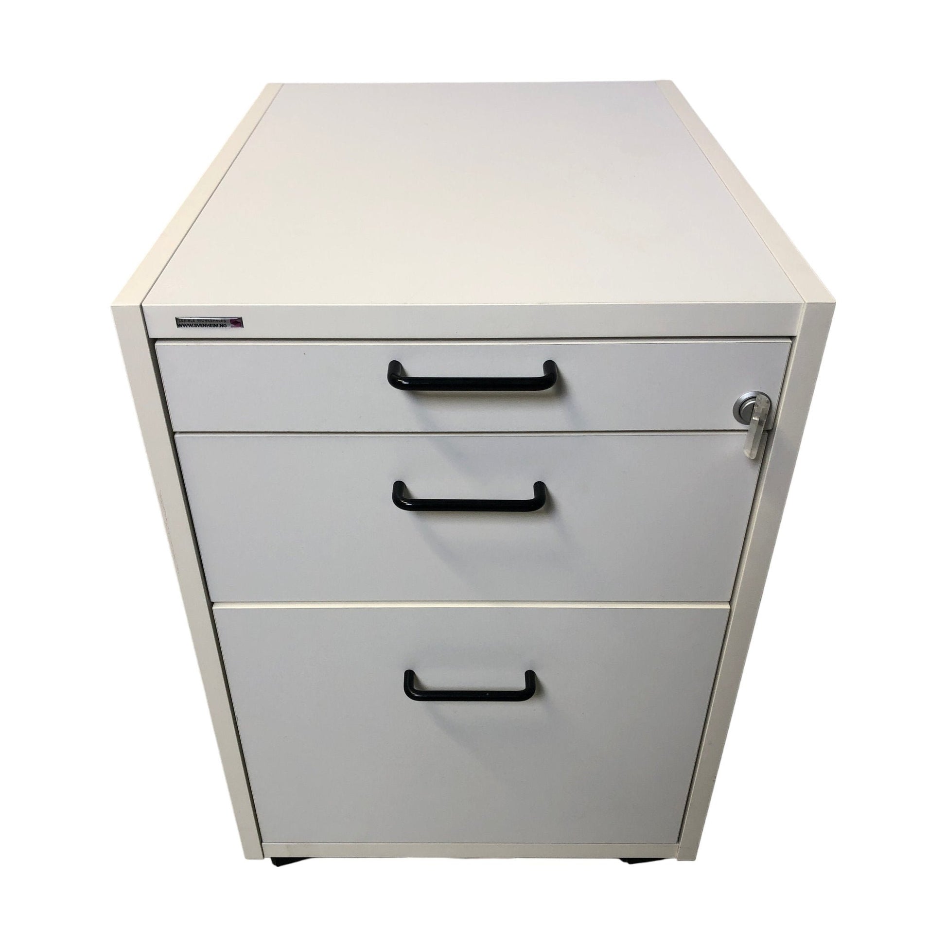 Praktisk arkivskap med 3 låsbare skuffer, perfekt for kontorbruk. Skapet er designet for å stå på hjul som kan låses, noe som gir fleksibilitet og stabilitet.