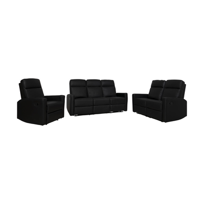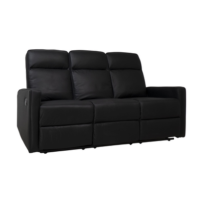 Asila er en plassbesparende 3-seter sofa fra A-Møbler, utstyrt med en praktisk recliner-funksjon som gir deg muligheten til å slappe av og hvile bena. Sofaen er trukket i en kombinasjon av sort Hud/PVC, og byr på moderne linjer.