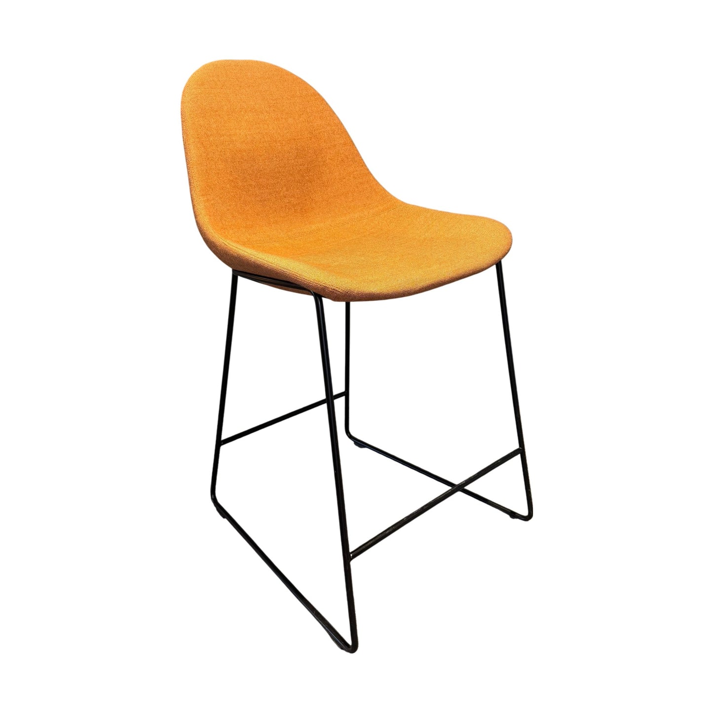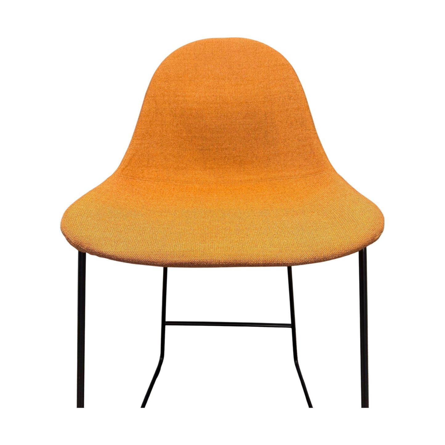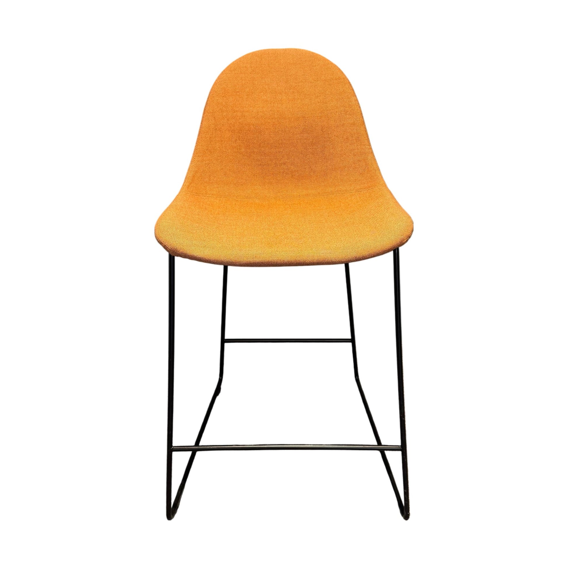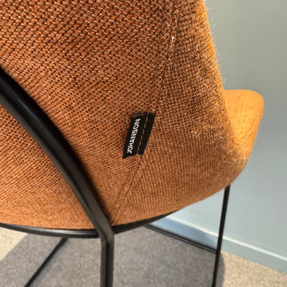 Barstol fra Johanson Design med et moderne og stilrent uttrykk, ideelt for både hjem og offentlige miljøer. Den varme oransje fargen kombineres med en solid ramme i svart stål, noe som gir en trendy kontrast. Setehøyden på 63 cm gjør den perfekt til barbord og høye arbeidsflater.