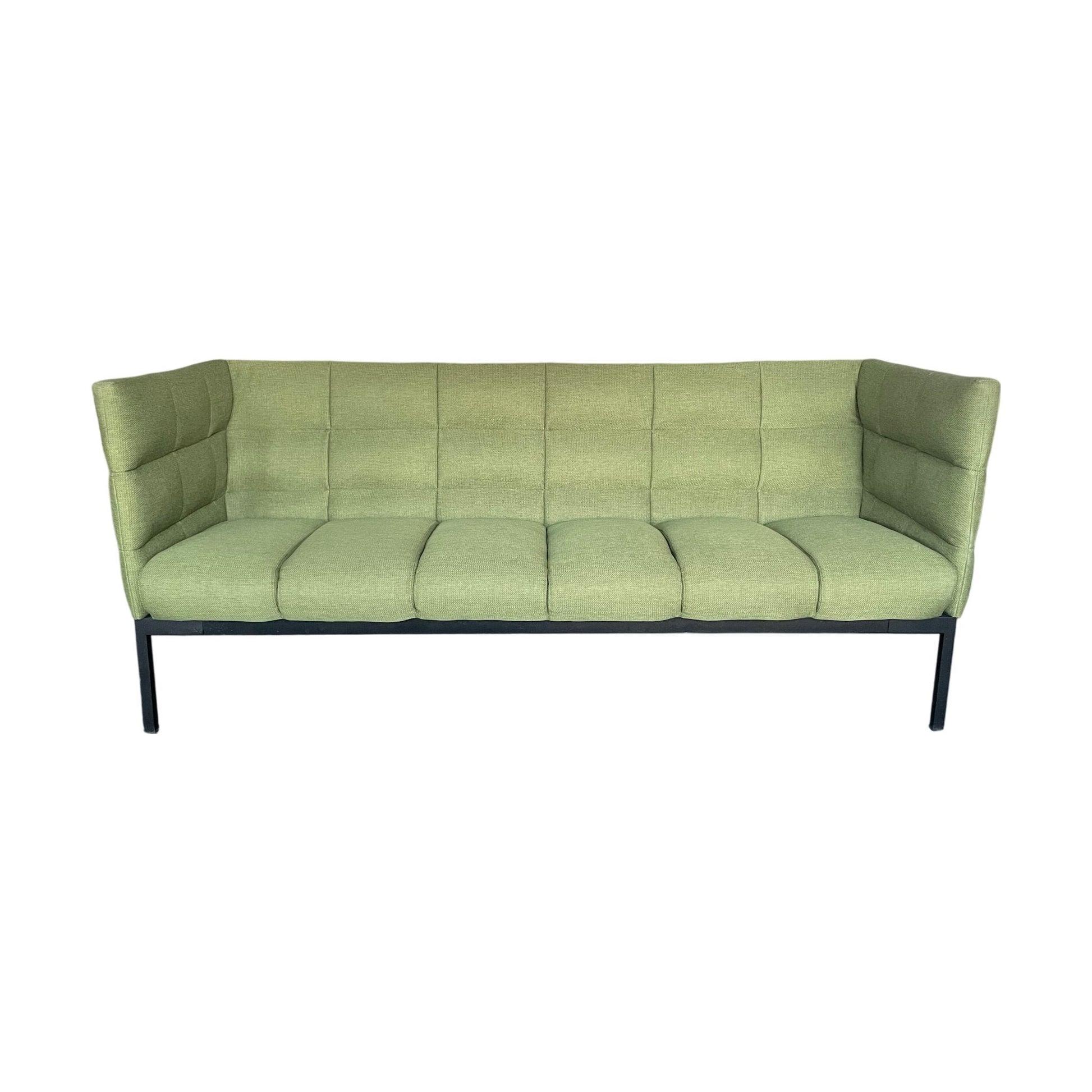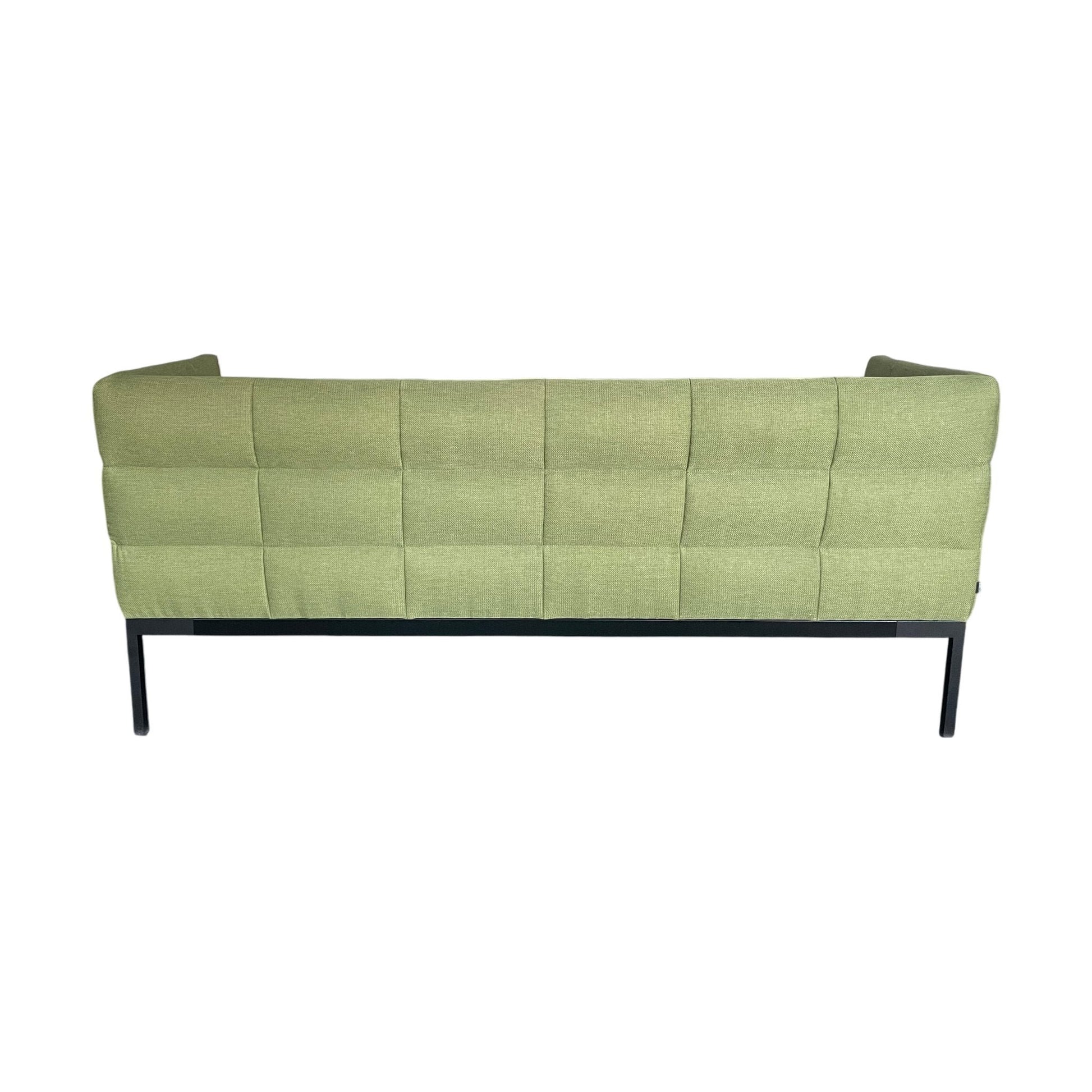 Sofaen er i god tilstand med minimale bruksspor som ikke påvirker bruken. Den grønne fargen og det enkle designet gjør denne sofaen til en utmerket mulighet for å tilføre både komfort og stil til ditt kontor.