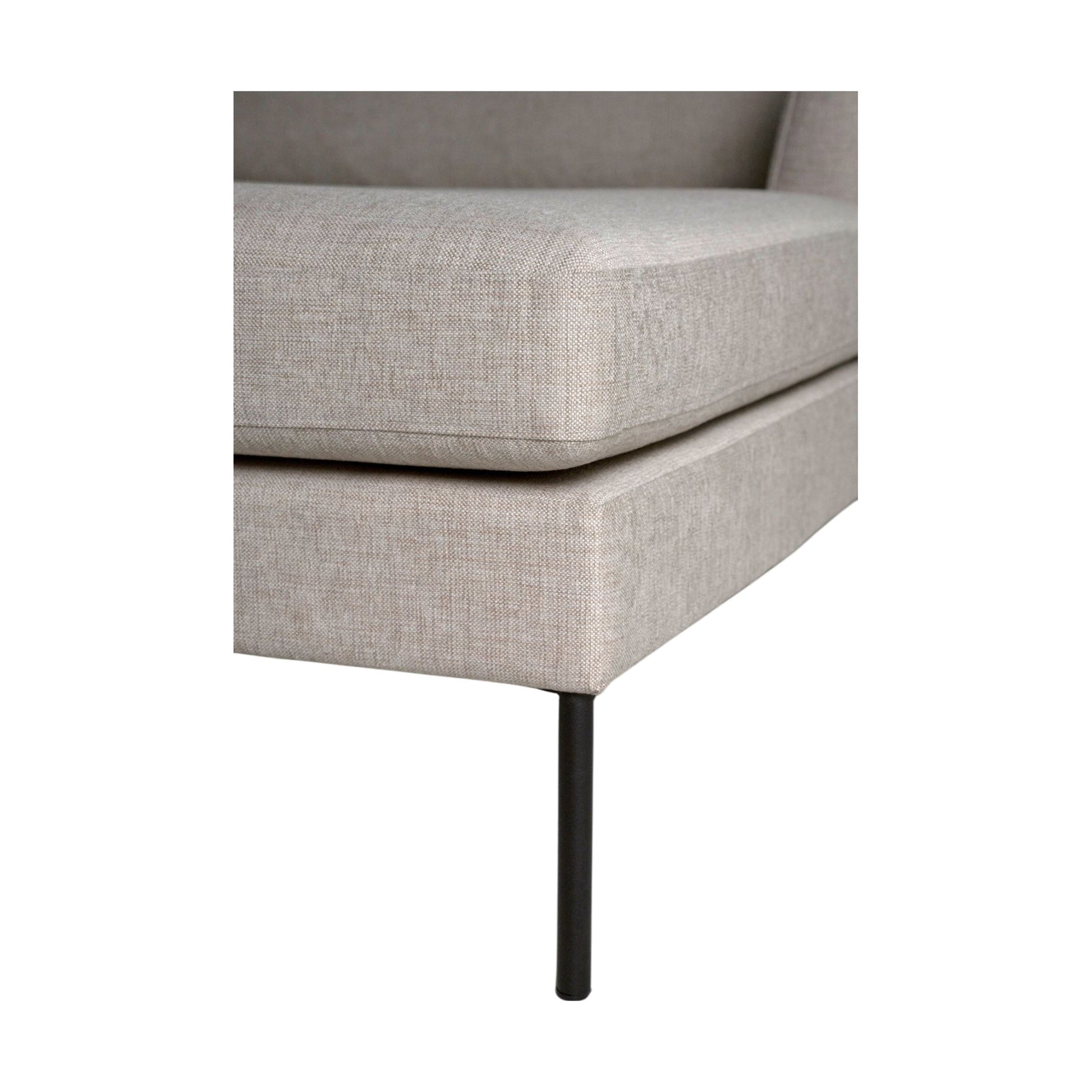 Nett og stilren Ava sofa med sjeselong på høyre fra Kid. Plasseringen av ende og sjeselong på sofaen beskrives ut ifra hvordan du ser sofaen forfra. Sofaen har en minimalistisk og stram utforming, men med fyldige puter som er komfortable og innbydende. Trekket er slitesterkt (43% polyester, 31% bomull, 26% akryl) og holder seg pent lenge. Putene har avtagbart trekk som kan vaskes på 30 grader finvask. Sofaen er bygget på en ramme av heltre furu og kryssfiner, som gir en stødig og holdbar kvalitet.