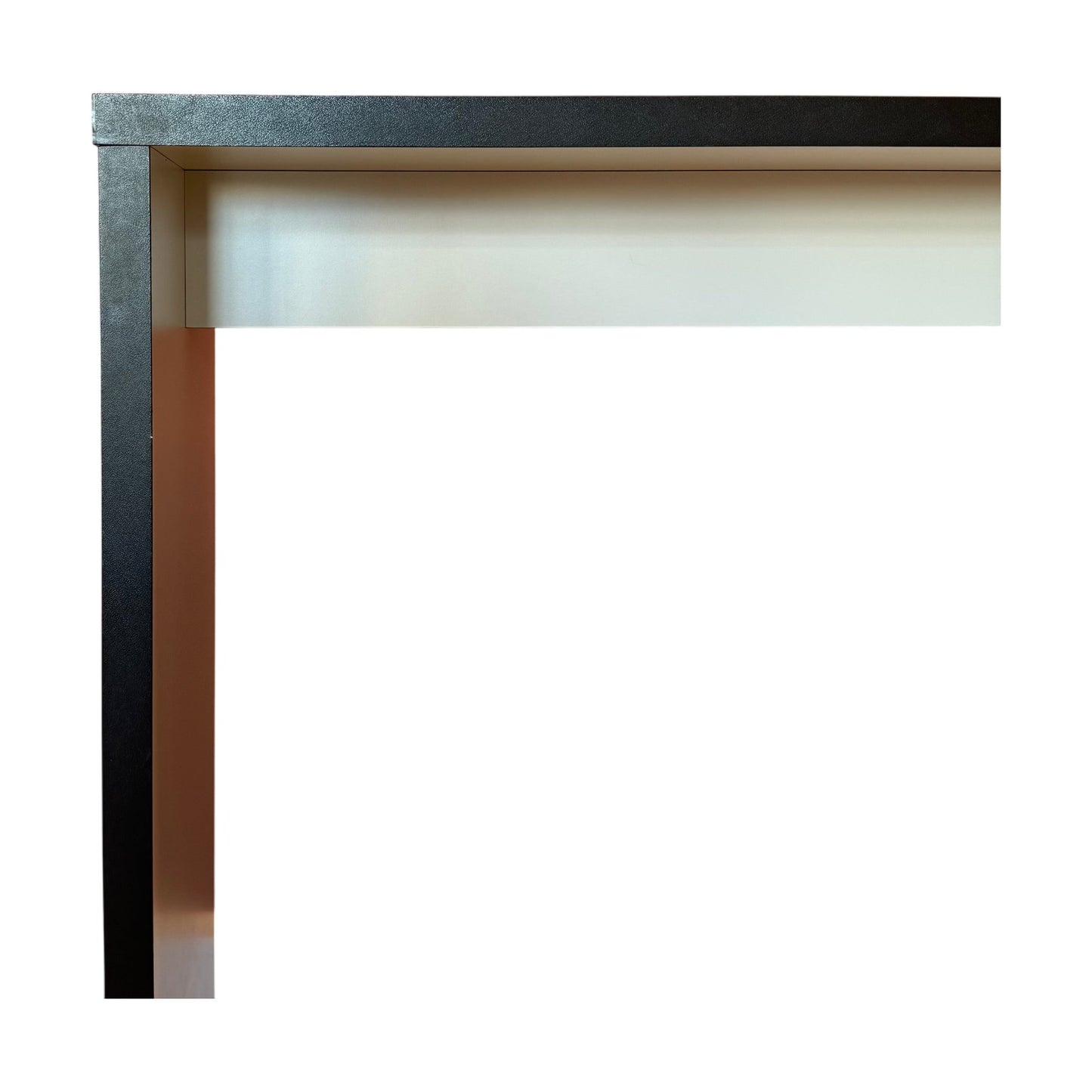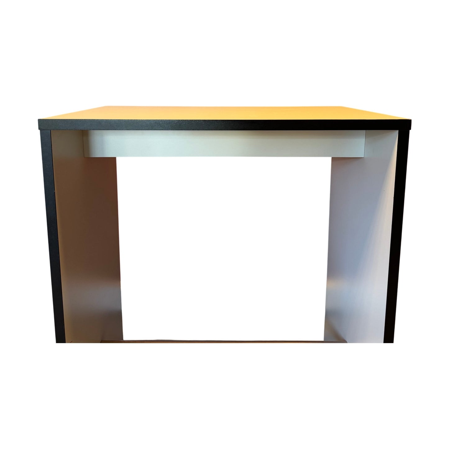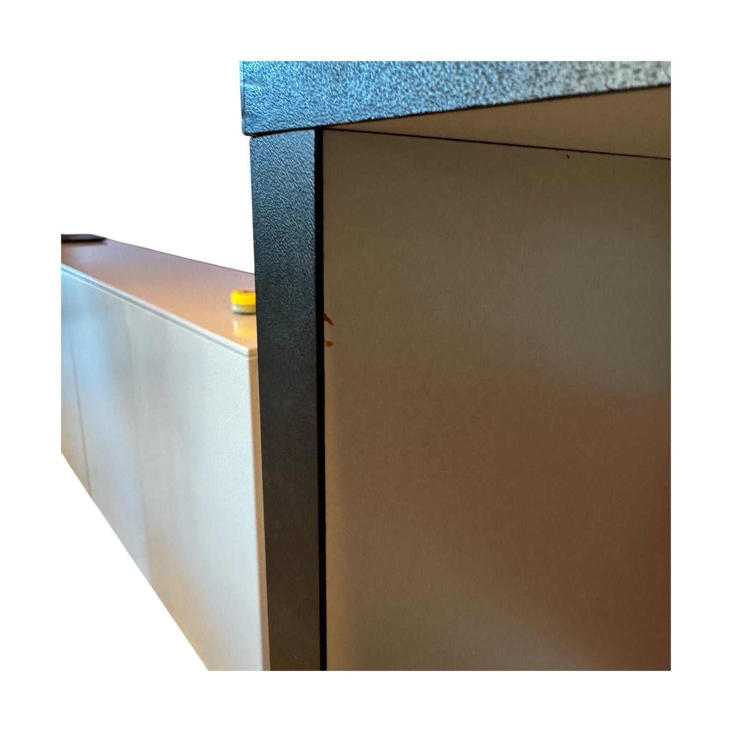Barbordet er i god stand, med noen marginale merker på innsiden og langs platen som ikke påvirker totalinntrykket. Det er en stabil og funksjonell løsning for sosiale områder.