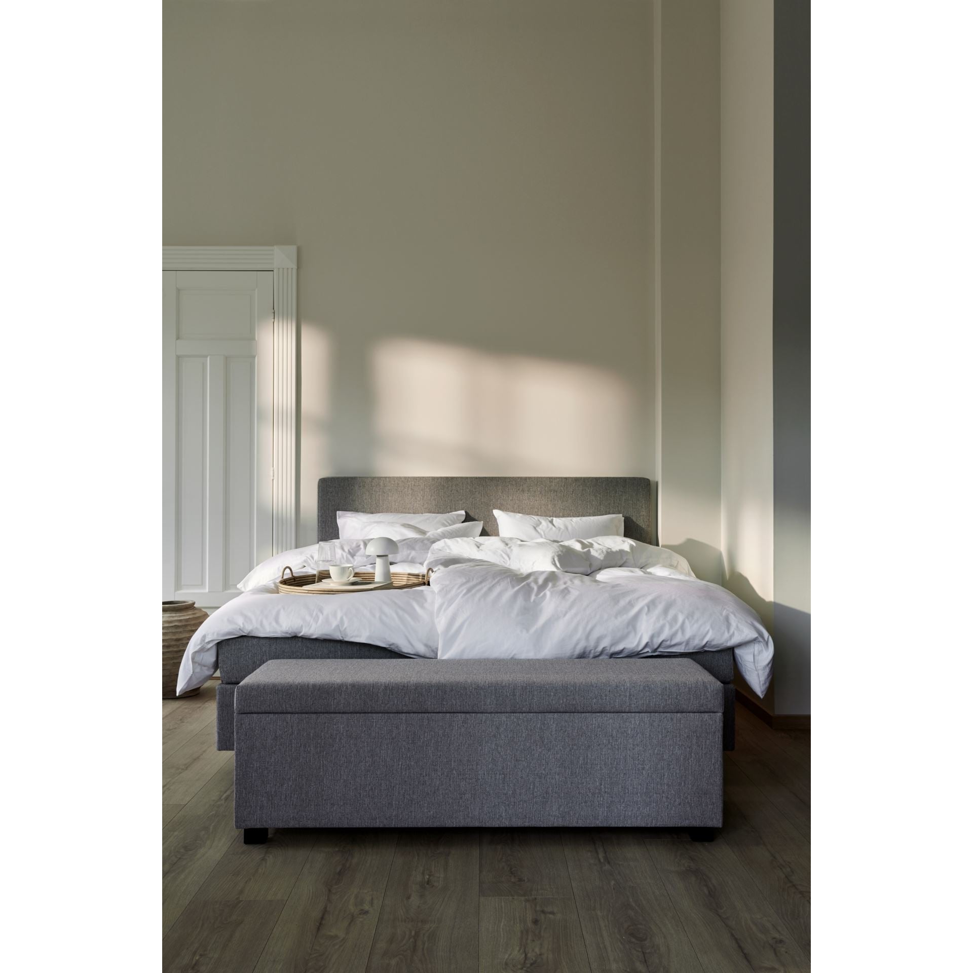Basic sengegavl fra Kid er en stilren og funksjonell tilføyning til soverommet ditt. Laget av slitesterkt polyester, har sengegavlen en solid konstruksjon av heltre furu og HDF, som gir både holdbarhet og komfort. Den grå fargen tilfører en moderne og tidløs stil, og gir umiddelbart et hotellromfølelse i ditt hjem.